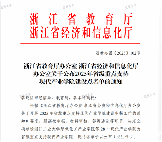 近日,浙江省教育厅办公室、浙江省经济和信息化厅办公室联合发布《关于公布2025年省级重点支持现代产业学院建设点名单的通知》,成人网 激光智能制造产业学院获批立项,这是我校在产教深度融合、校企协同育人方面取得的又一硕果。