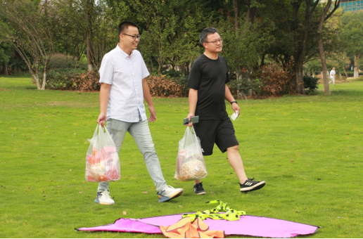 正值活动开展的如火如荼,我们的两位老师拎着一大袋零食,远远地向我们走来。他们的到来让我们的气氛更加活跃。一个个活动以小组的形式进行对决,更加考验大家的团队精神。游戏取得胜利的时候大家好欢呼雀跃。游戏失败后大家也不忘相互鼓励。