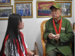 在采访时,马发泉先生虽然已经满头华发,但他依然精神矍铄地为我们讲述着一个个震撼人心的战地故事。1952年的上甘岭战役,是他最难忘的一次回忆。当时,他被编入了十二军的爆破连,阵地的最前沿和敌军只相距仅仅20多米。志愿军的装备与敌人差距悬殊,敌人们的弹雨却铺天盖地,敌军为了夺取胜利,在战地的河水中投毒,导致志愿军大量缺水,甚至为了活下去不惜喝尿。在战争中,传信同样极为不便,一封信要过半年甚至更久的时间才能传回家中。马发泉的二哥误以为他在战场上牺牲,悲痛不已,便写信回家告诉母亲噩耗。后来兄弟二人在战场上相遇才知闹出了乌龙。马发泉先生立马照了相片寄回家中,告知母亲自己并未牺牲的消息。这是他在上甘岭战场上给母亲寄出的唯一一封信。他感叹,如今的生活真是比那个混乱纷争的年代幸福太多。当实践队队员问及,有什么要对年轻人说的话时,他洪亮地说道:“一定要坚定不移地跟随中国共产党,不忘初心跟党走,没有共产党,就没有今天的新中国。”队员们也饱受感动,对老兵致敬。