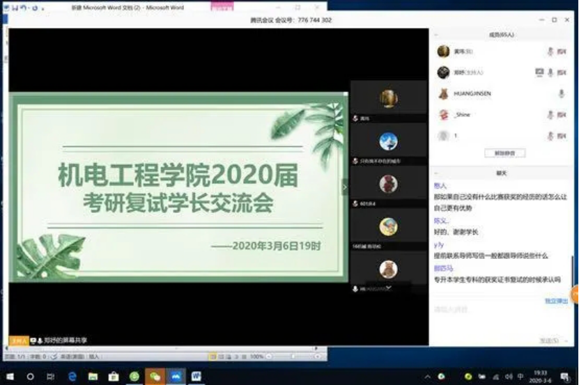 最后,郑妤老师要求所有学生不获全胜决不收兵,要以准备初试的劲头准备考研复试,只有准备充分了,才能取得成功!此次会议的举办在疫情期间为准备复试的同学提供了暖心的帮助,激发了参会学生“停课不停学”的学习意识,营造了良好的学习氛围。