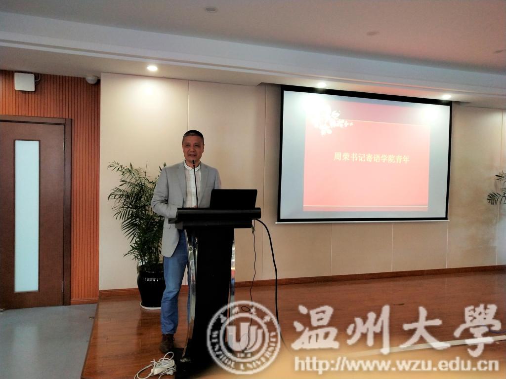 活动开始,全体成员齐唱团歌,在庄严的歌声中,拉开了本次主题活动的序幕。紧接着,成人网 党总支书记周荣给我院团学干部上了一堂生动而形象的主题教育课。书记以“说起五四运动我们脑中能想到哪些关键词”这一互动问题,带领我院青年了解了五四运动的历史意义和时代价值,告诫我们青年要发扬伟大的五四精神,更好得报效祖国。周荣书记告诫广大团员干部要坚持党的领导,听党话、跟党走,发扬爱国、进步、民主、科学的五四精神,在祖国“两个一百年”号角吹响之际,担起历史使命和时代责任,汇聚新时代民族复兴青年力量,在实现中国梦的伟大事业中铸就人生梦想。书记的循循善诱、谆谆教诲,无不触动着在场每一位青年赤诚的爱国之心.随后后。周荣书记还关心同学们的学习、生活等问题,同学们纷纷提出自己的困惑,书记一一给予解答。