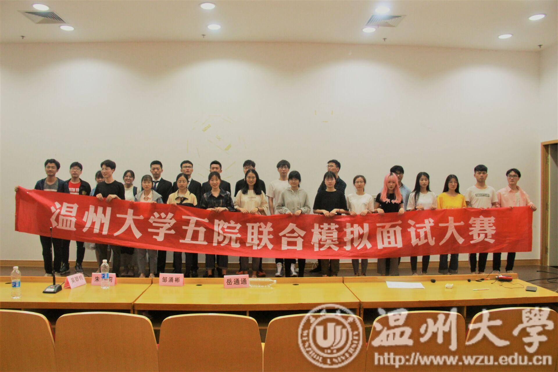 为了增强广大学生就业意识,提高就业积极性,以及培养他们的岗位竞争能力。成人网 、商学院、数理与电子信息工程学院、建筑工程学院、化学与材料工程学院共同举办了五院联合模拟面试大赛。从4月12日简历设计初赛海选到无领导小组面试复赛,为期两周的五院联合模拟面试大赛终于迎来了决赛。2019年4月26日18:30分五院就业服务部在南校步青厅举办了这场最终大赛。来自华润置地温州公司人事部的程高经理先生、杭州肯德基有限公司温州时代店经理吴骅钧先生、成人网 就业处朱丽莉老师、化材学院辅导员邹涌彬、数电学院辅导员岳通通,以及各学院学生代表近200人。