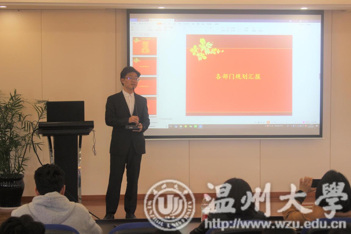 召开第一次全体大会旨在对上学期的工作进行总结以及对本学期的工作进行计划安排,促使团委学生会各成员在以后的工作中更严格要求自己。首先由孙双老师对团委学生会上学期的工作作出点评,对未来的工作进行展望,并对学生会寄予了美好的期望,孙老师的讲话也让同学们了解到了过去工作的不足,同时也为得到肯定而高兴。接着,团委副书记钟柳艳结合自己的工作经历对上学期的工作任务进行总结,钟柳艳学姐从“第一次全委会”、“运动会”、“院科技之光闭幕式暨颁奖典礼”三个活动为代表对学生会的工作进行点评。随后团委学生会各部门部长上台对本部门的工作进行总结,向大家介绍了本学期工作计划,并做出了工作设想。在听完各部门汇报后,学生会主席孙浩岚对本次大会作最后的总结陈词,对上学期工作作出肯定的同时也对不足之处提出意见和要求。最后,各位老师以及团委学生会全体成员合影留念。